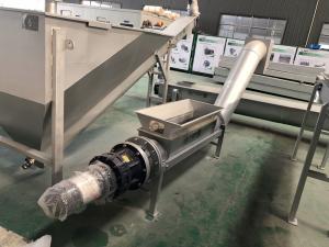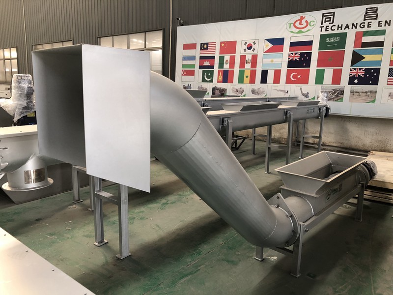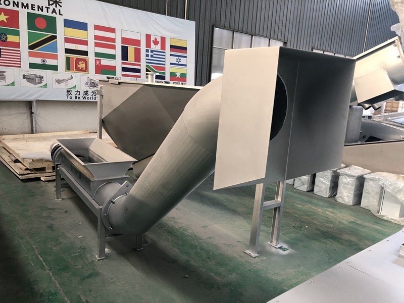 该设备采用有轴螺旋式,当物料从进料斗进入,通过螺旋体将渣推至出料管道内,依靠栅渣重力压缩后推出出料口,直接排放至垃圾小车内外运,压出的废水通过滤网和集水管经排水管排出。
