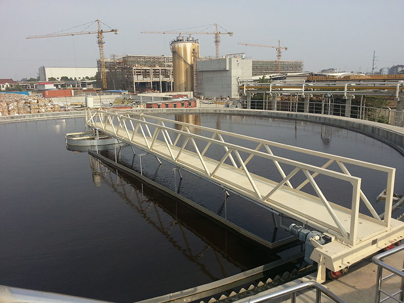 工作桥结构:池径10米以下宜采用型钢梁,大于10米采用桁架梁。