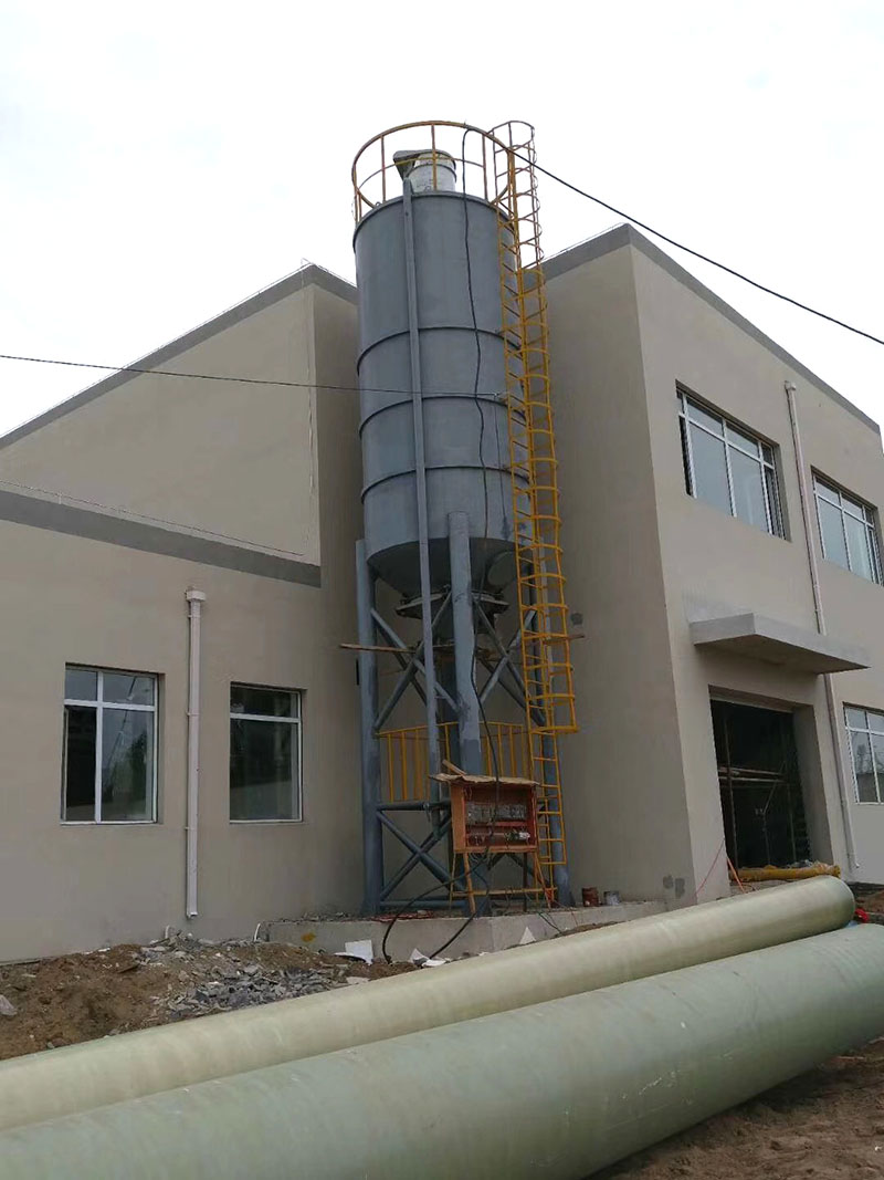 石灰粉料仓为密封式储存石灰粉末的锥形容器,本体设备由:罐体、内外直爬梯、护拦、人孔、呼吸阀、支腿、进料管、料位计、气动破拱装置、除湿装置等组成。