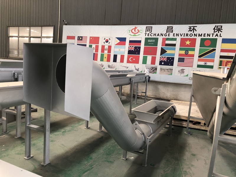 该设备采用有轴螺旋式,当物料从进料斗进入,通过螺旋体将渣推至出料管道内,依靠栅渣重力压缩后推出出料口,直接排放至垃圾小车内外运,压出的废水通过滤网和集水管经排水管排出。